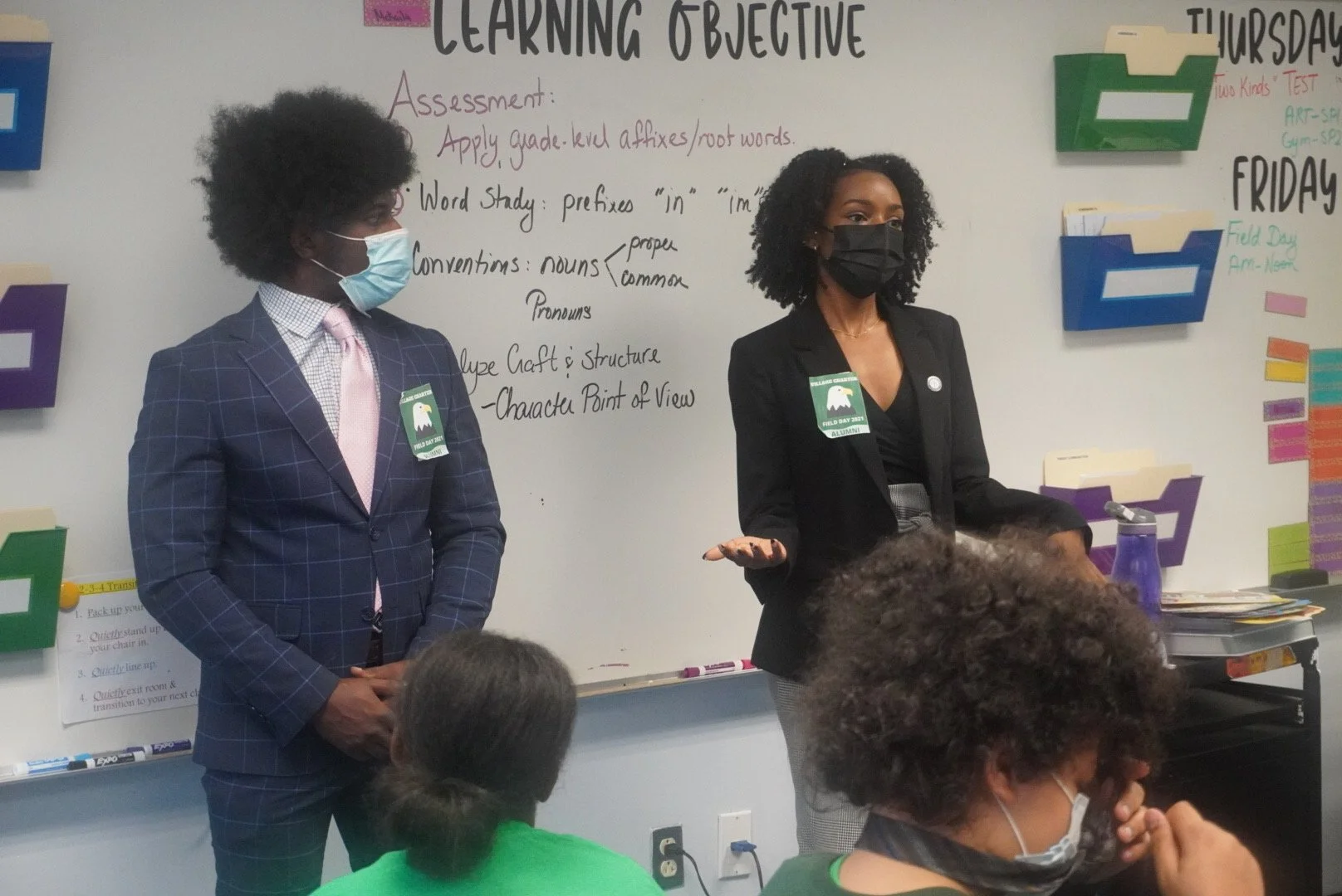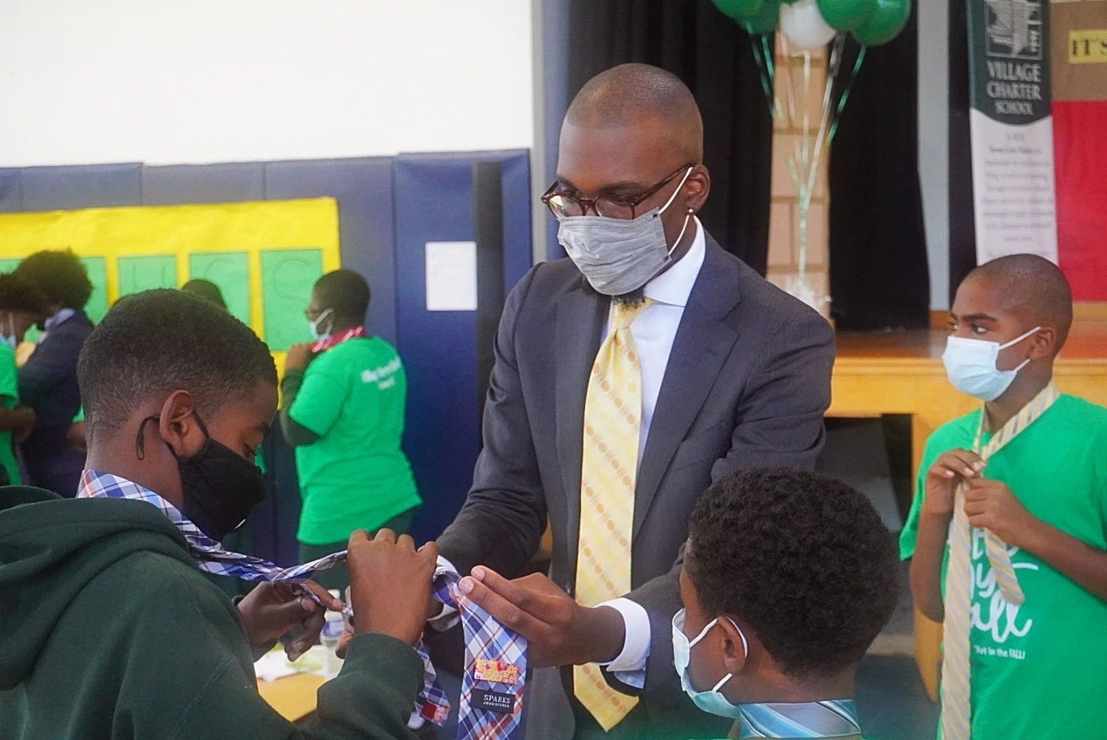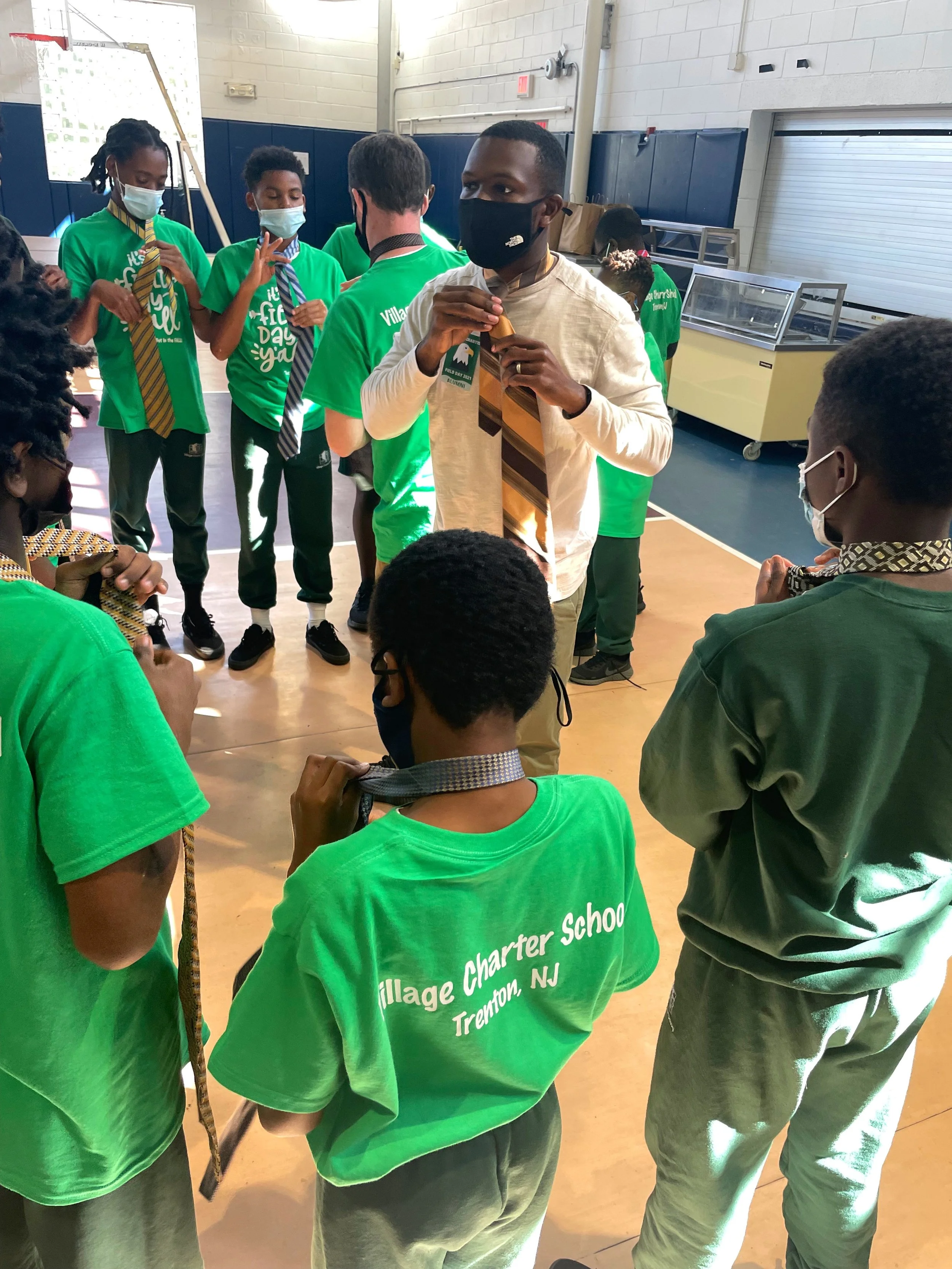 SHARP Academy, a pre-professional organization for 130 middle school students, brought eight alumni back for a panel discussion, breakout sessions, and professional workshops. The alumni’s career work spanned media, fashion, law, finance, education, politics, and more. During one of the workshops, male students were taught to tie ties and given quality ties to take home. Female students were given a set of pearls and guided through strategies to define their own beauty standards.